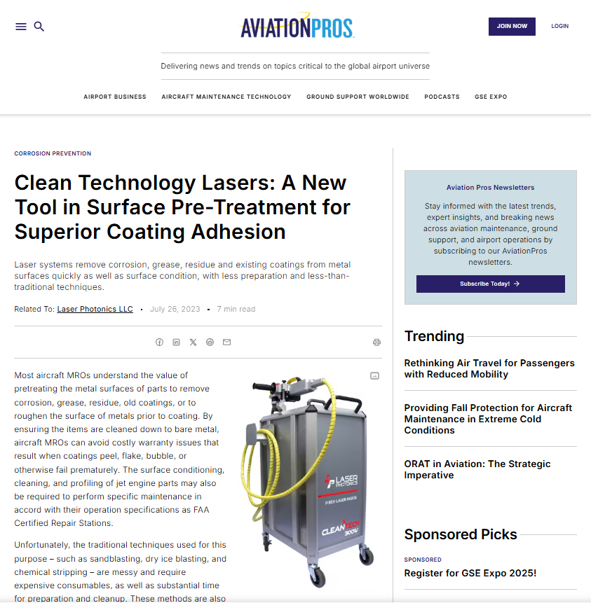 Permalink: https://laserphotonics.com/news/media-mentions/laser-cleaning-techniques-in-industrial-applications/